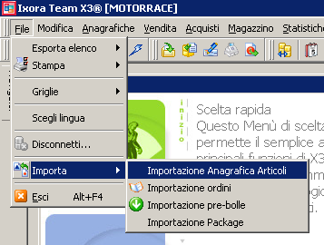 Per importare un'anagrafica in X3 è sufficiente cliccare su File -> Importa -> Importazione Anagrafica Articoli